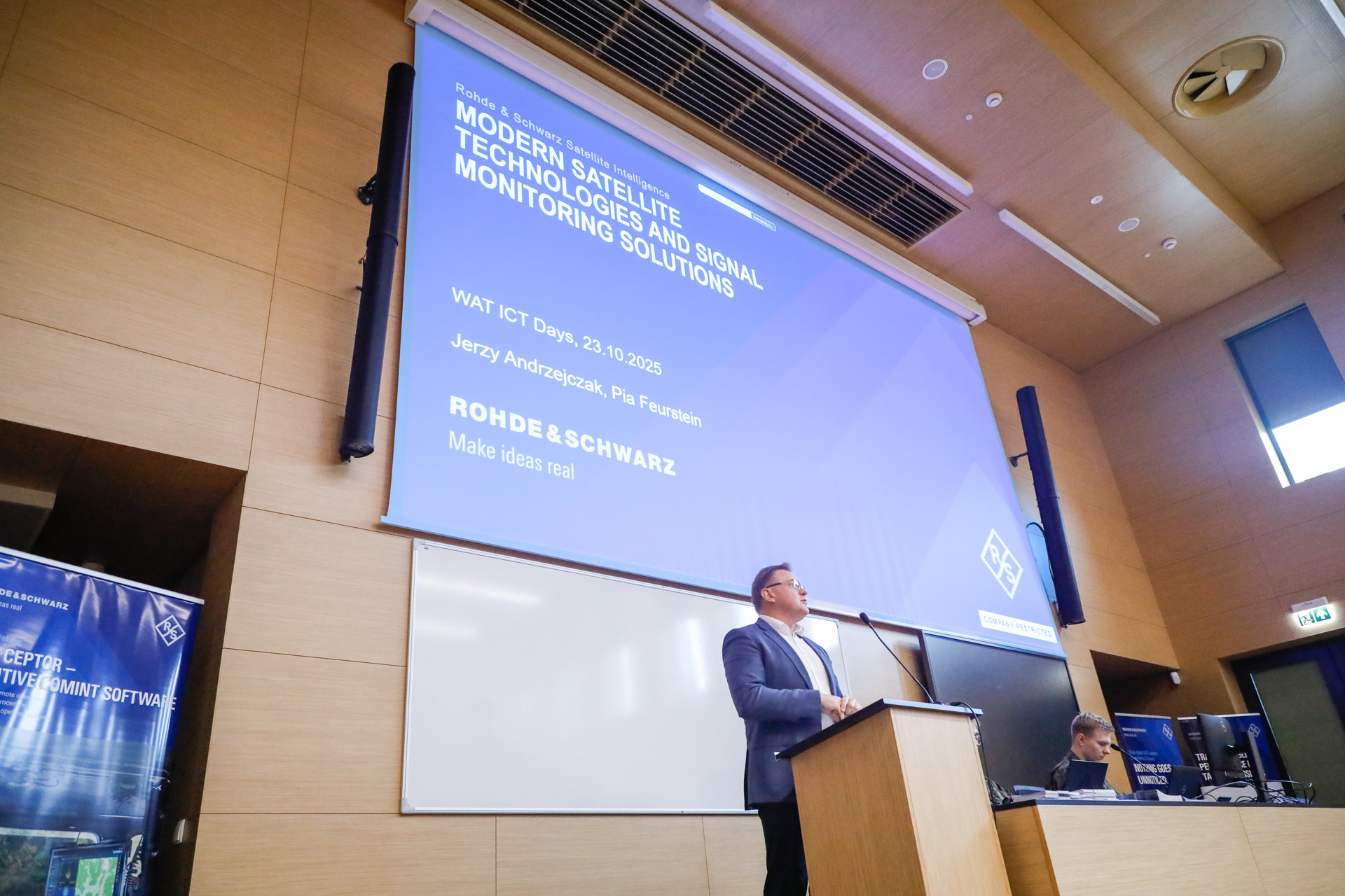 23 października 2025 r. w auli Radiowego Centrum Naukowo-Dydaktycznego Wydziału Elektroniki Wojskowej Akademii Technicznej odbyło się VII seminarium z cyklu WAT ICT DAYS, zatytułowane „Nowoczesne technologie satelitarne i techniki monitorowania sygnałów”. Spotkanie poprowadzili przedstawiciele firmy Rohde & Schwarz Polska. Tematem przewodnim seminarium były rozwiązania Rohde & Schwarz w obszarze systemów satelitarnych oraz ich zastosowania w sektorze cywilnym i wojskowym.